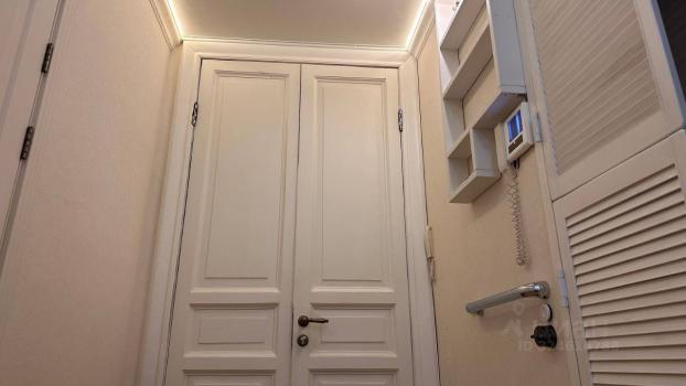 В квартире установлены винтажные бронзовые светильники которые придают определенный колорит и подчеркивают пространство и высоту потолков.