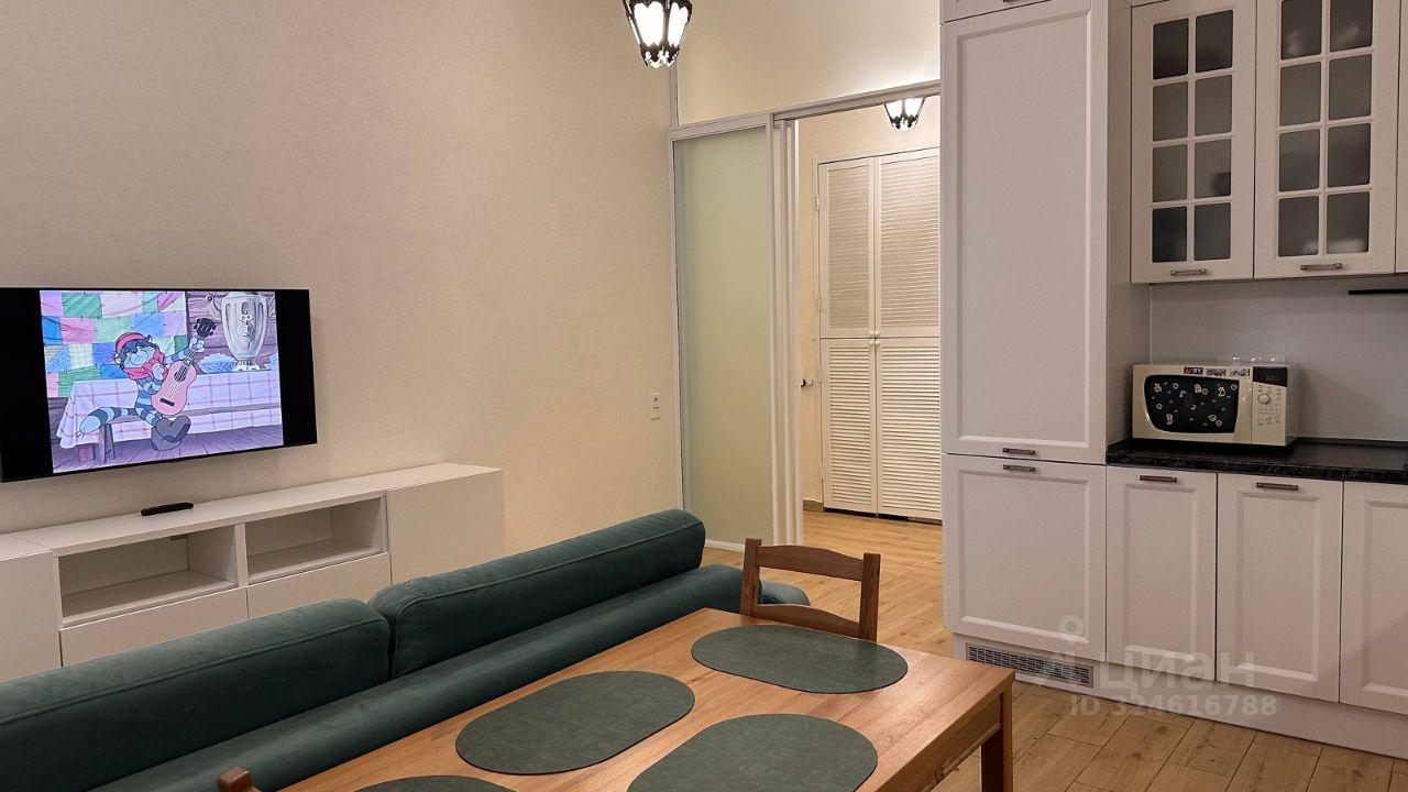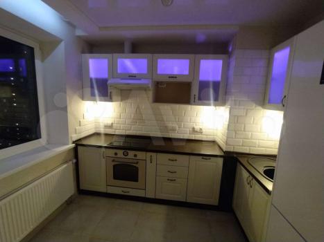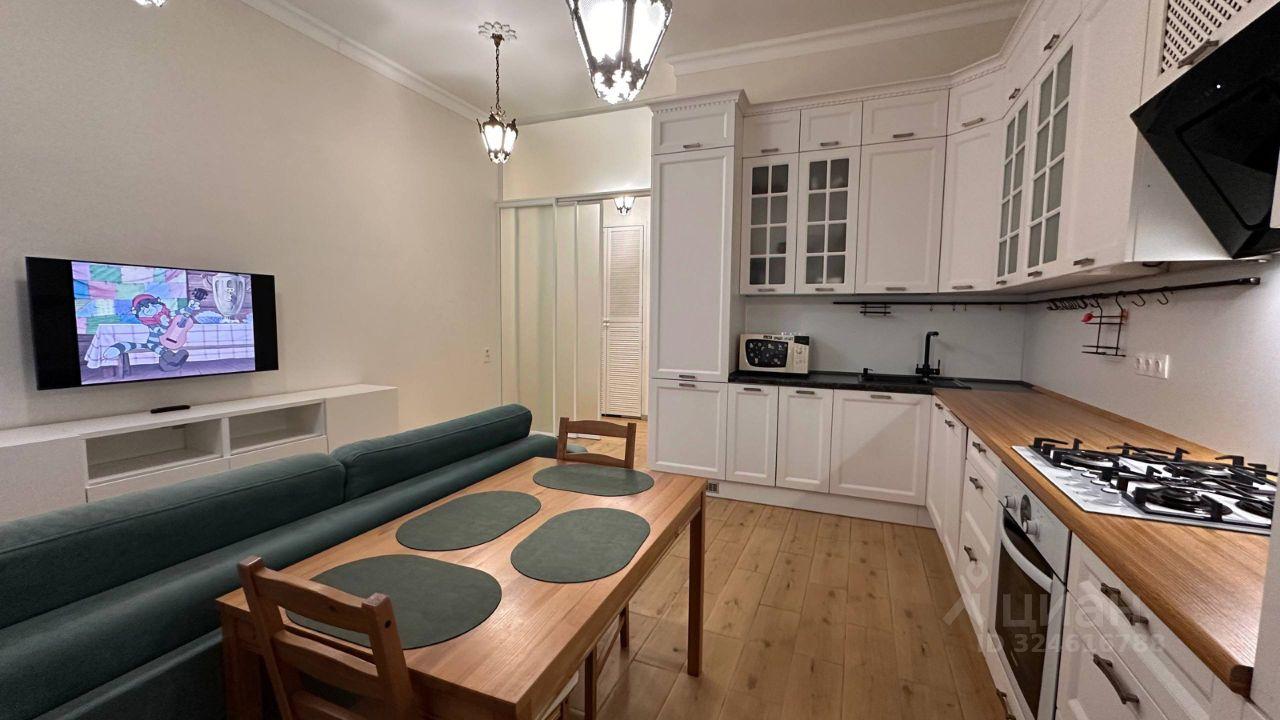 Смарт телевизор, большой диван, раскладывается и обеспечивает дополнительное спальное место, большой современный кухонный гарнитур, стол и стулья ИКЕЯ ( дерево)