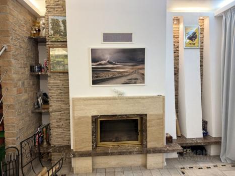 1 этаж . Кухня - гостиная с настоящим камином и гостевым туалетом .