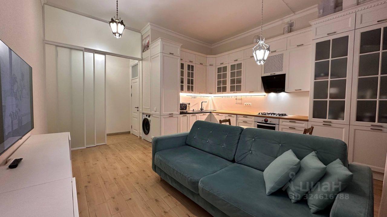 На Петроградской стороне, по адресу: Малый проспект, 23. Общая площадь - 65 кв. м, из которых 35 кв. м - жилая площадь и 24 кв. м — просторная кухня-гостиная