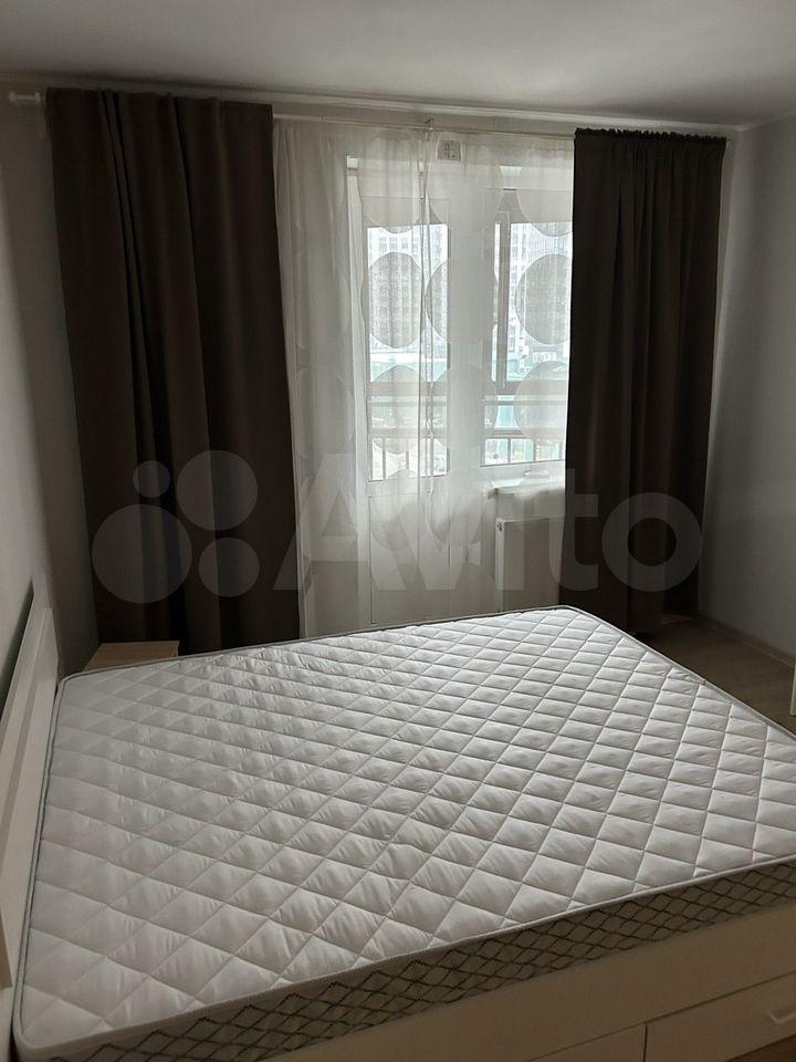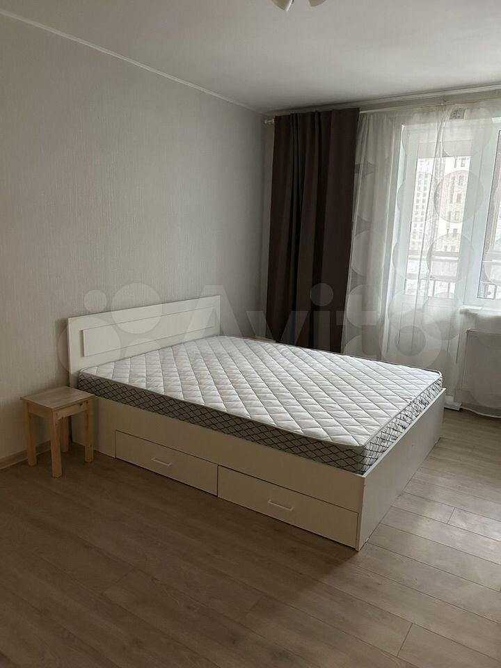 В комнате установлен смарт-телевизор, кровать ИКЕЯ 160*200, ортопедический матрас Аскона, огромный шкаф, тумба-IKEA, комод ИКЕЯ.