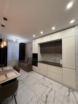 В квартире выполнен дизайнерский ремонт, создающий атмосферу уюта и современности. Просторная кухня оснащена всей необходимой техникой.