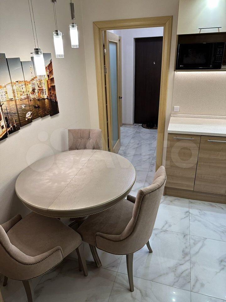Кровать с ортопедическим матрасом (двусторонний средний/жесткий), кухонный гарнитур с встроенной техникой KUPPERSBERG, диван, обеденная зона, гардеробная, вместительный шкаф в прихожей и в ванной, теплый пол в с/у.