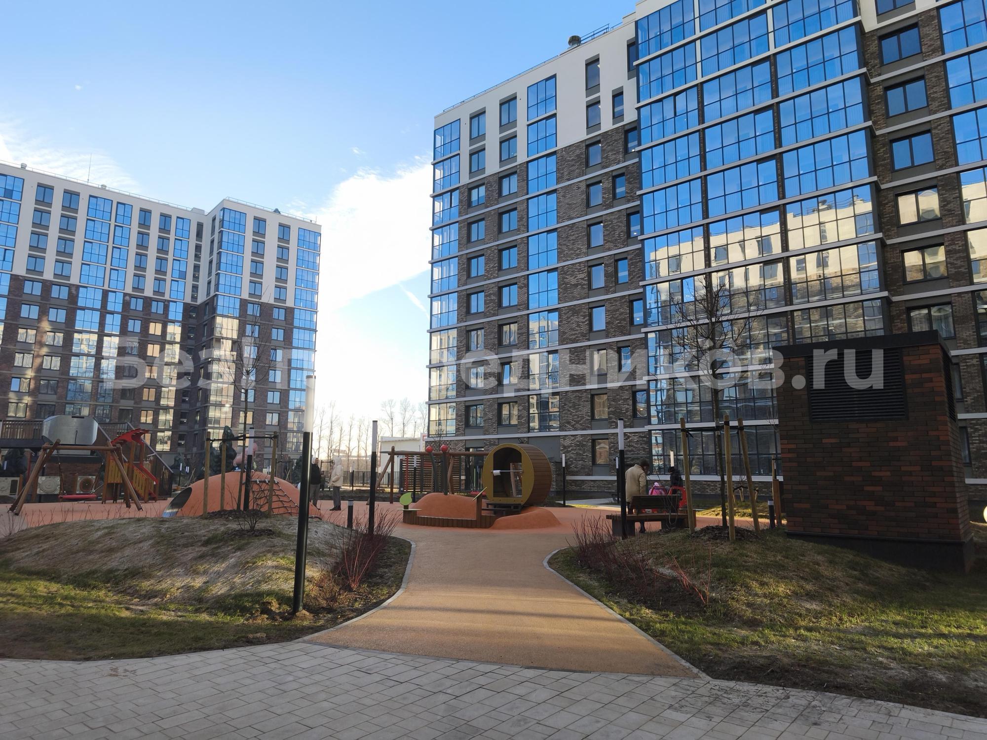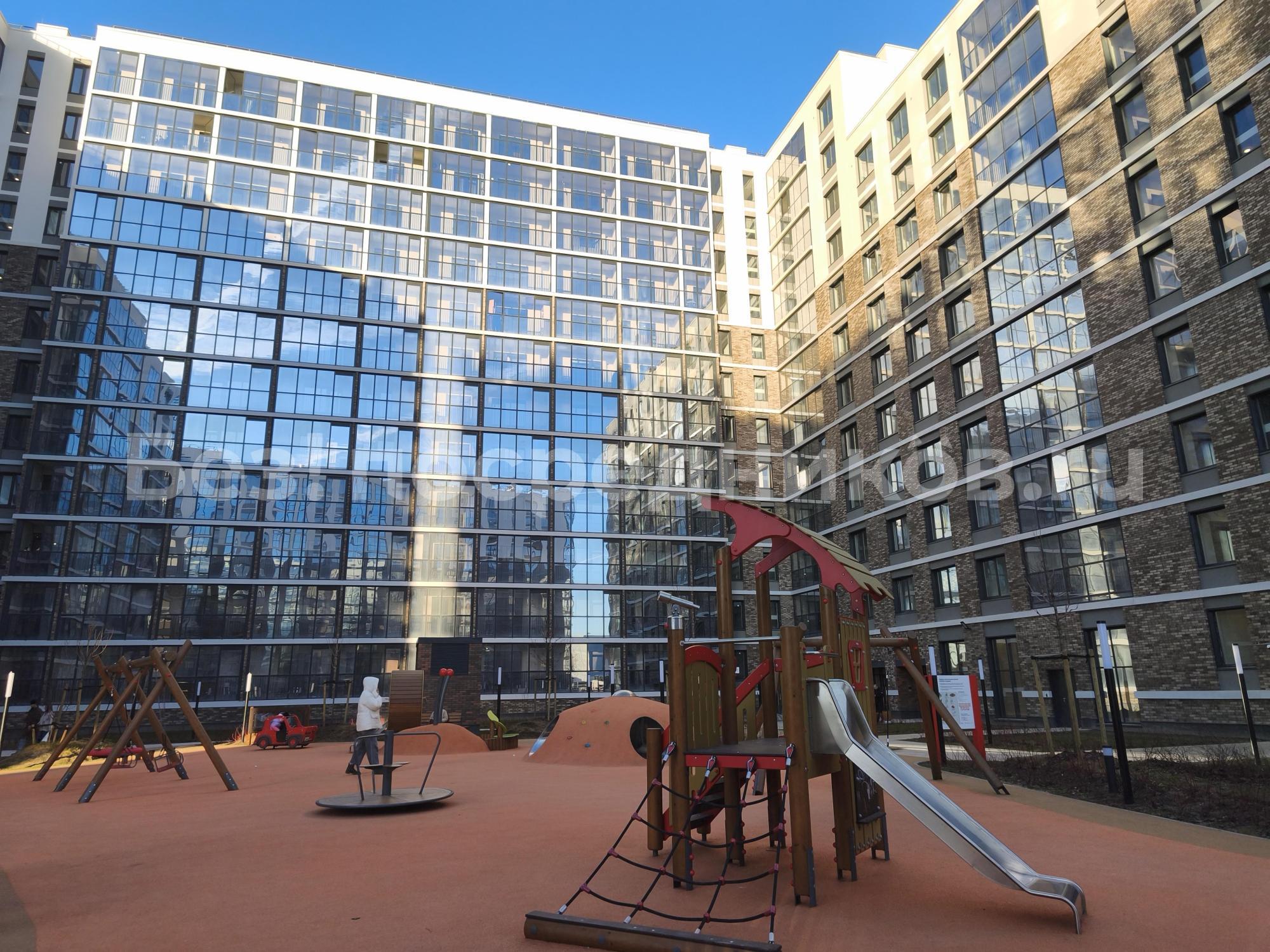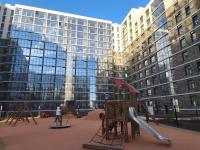 Квартира светлая, окна выходят в красивый и уютный внутренний двор комплекса с ландшафтным дизайном. Во дворе обустроены дорожки, клумбы, сад камней с фонтаном, дизайнерская стелла, спортивная площадка, скамейки, гамаки.