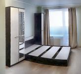 В спальне кровать 160/200 с ортопедическим матрасом. В кухне-гостинной раздвижной двухспальных диван. Все шкафы эргономичны с мах вместимостью.