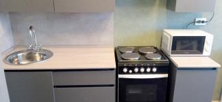 - индукционная варочная панель со стеклянной поверхностью и электрический духовой шкаф, посуда для индукционной панели не предоставляется, вся посуда и белье с одеялами – Ваши;