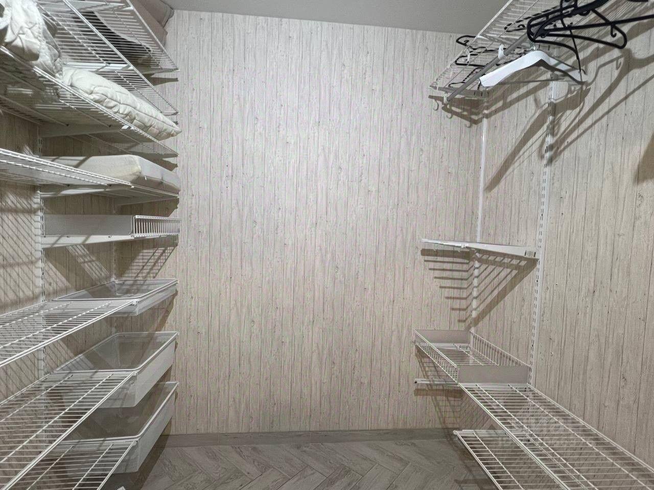 В квартире все готово для комфортного проживания, имеется вся кухонная техника с посудомоечной машиной, стиральная машина, робот-пылесос, ТВ с саундбаром, кондиционер, просторная гардеробная. Раскладной диван имеет ортопедический матрац.