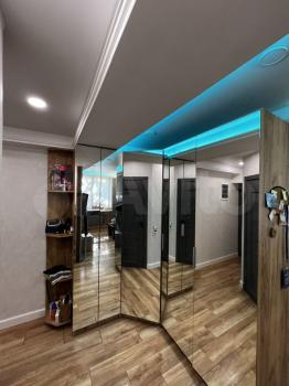 В прихожей большой зеркальный шкаф - гардеробная.