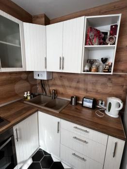 Кухонная зона с духовым шкафом indesit, есть комплект посуды, вытяжка. Сделана барная стойка из слэба дуба - идеально для уютных вечеров.