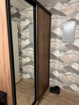 есть вся необходимая мебель для жизни(огромный шкаф с большим зеркалом и вместительными ящиками в очень удобном месте в коридоре, что освобождает и без того большую комнату, в комнате диван, необходимые полки, подставка под ТВ),