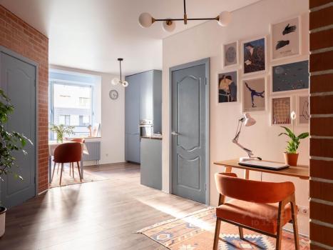 Дизайнерская мансарда с выходом на крышу и французским балконом