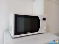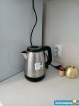 Есть электроплита с духовкой, вытяжка, чайник, холодильник, стиральная машина, микроволновая печь, утюг, пылесос, телевизор.