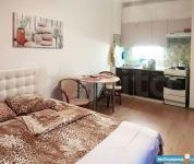 Студия (Комната-кухня) + огромная лоджия 6м.кв с местом для отдыха: стол и кресла из ротанга, прихожая с вешалкой - очень чистая, полностью оборудованная: посуда, столовые приборы, плита, микроволновка, большой, новый, тихий холодильник, сушилка для белья, БОЛЬШАЯ двуспальная кровать 160х200 с удобным матрасом и огромным ящиком для хранения вещей. Санузел совмещенный, душевая кабина, стиральная машина.