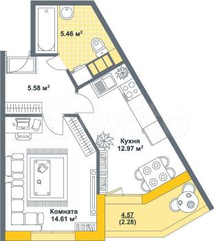 1-к квартира, 34.2 м²37 000 р.