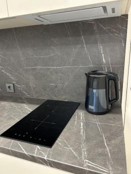 Кухня и все необходимое (посуда), микроволновка, духовка, посудомоечная машина, стиральная машина, полноценная варочная панель. Интернет.