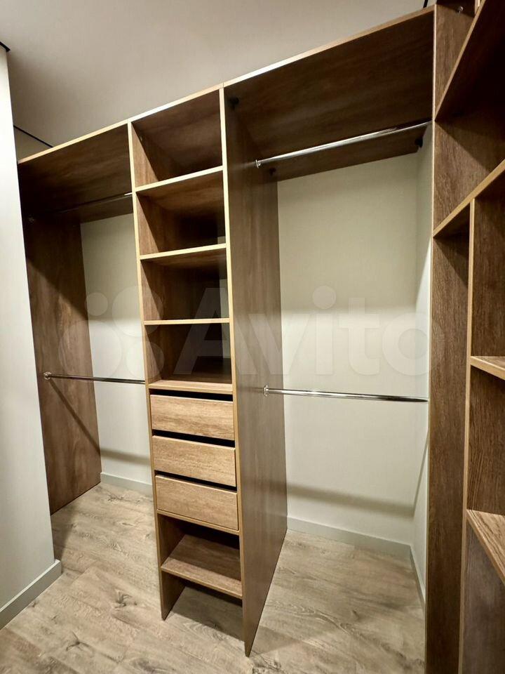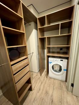 Гардеробная оснащена местами для хранения , что позволяет в спальне не занимать место шкафом