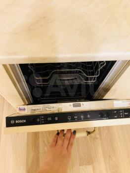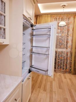 В кваpтире есть посудомоечная машина, холодильник, джакузи и стиральная машина, два телевизора, кухонный стол и стулья, шкаф для одежды.
