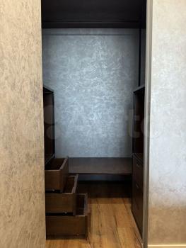 В большей комнате перегородкой отделена комната (1,8х3м), которая закрывается на ключ. Сейчас там стоит кровать, комод и стол. Можно организовать в ней гардеробную.