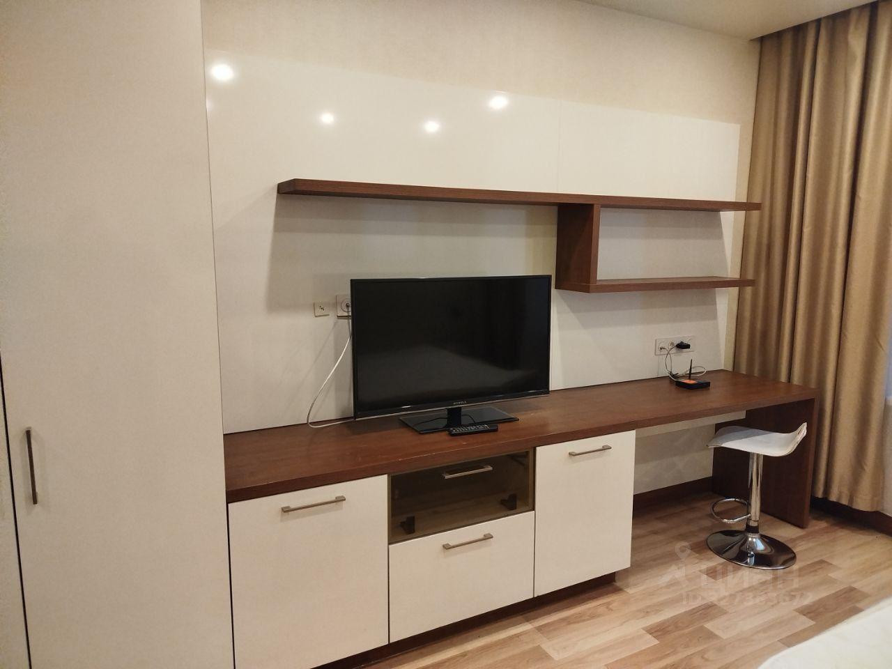 В квартире сделан евроремонт, есть все необходимое для комфортного проживания. В кухне и комнате установлена мебель, а из техники есть холодильник, телевизор и стиральная машина. Санузел совмещенный, оборудован ванной. Планировка студии позволяет легко организовать пространство под ваши нужды.