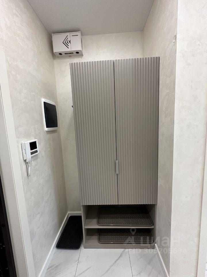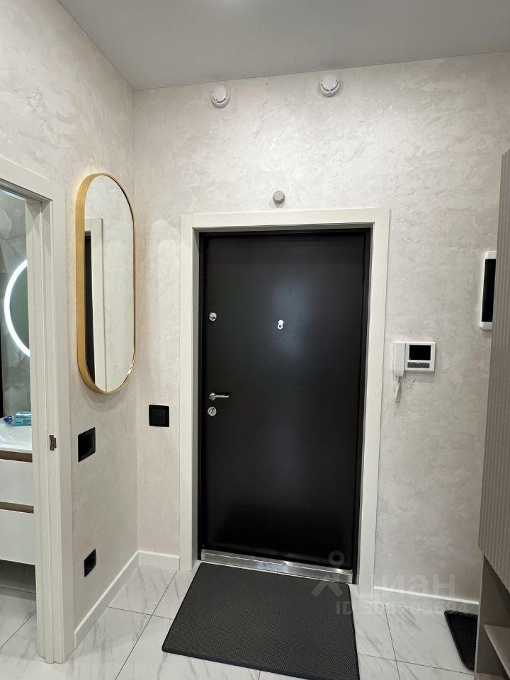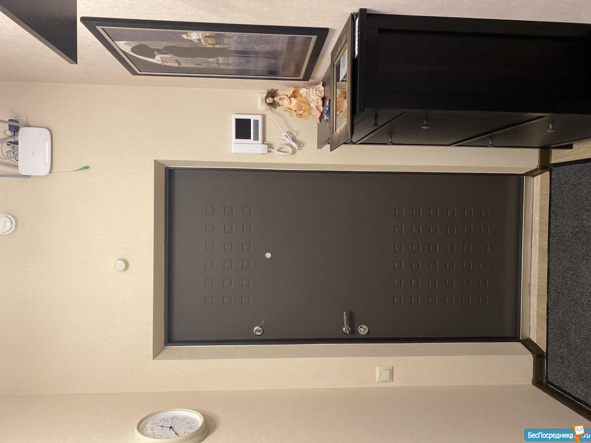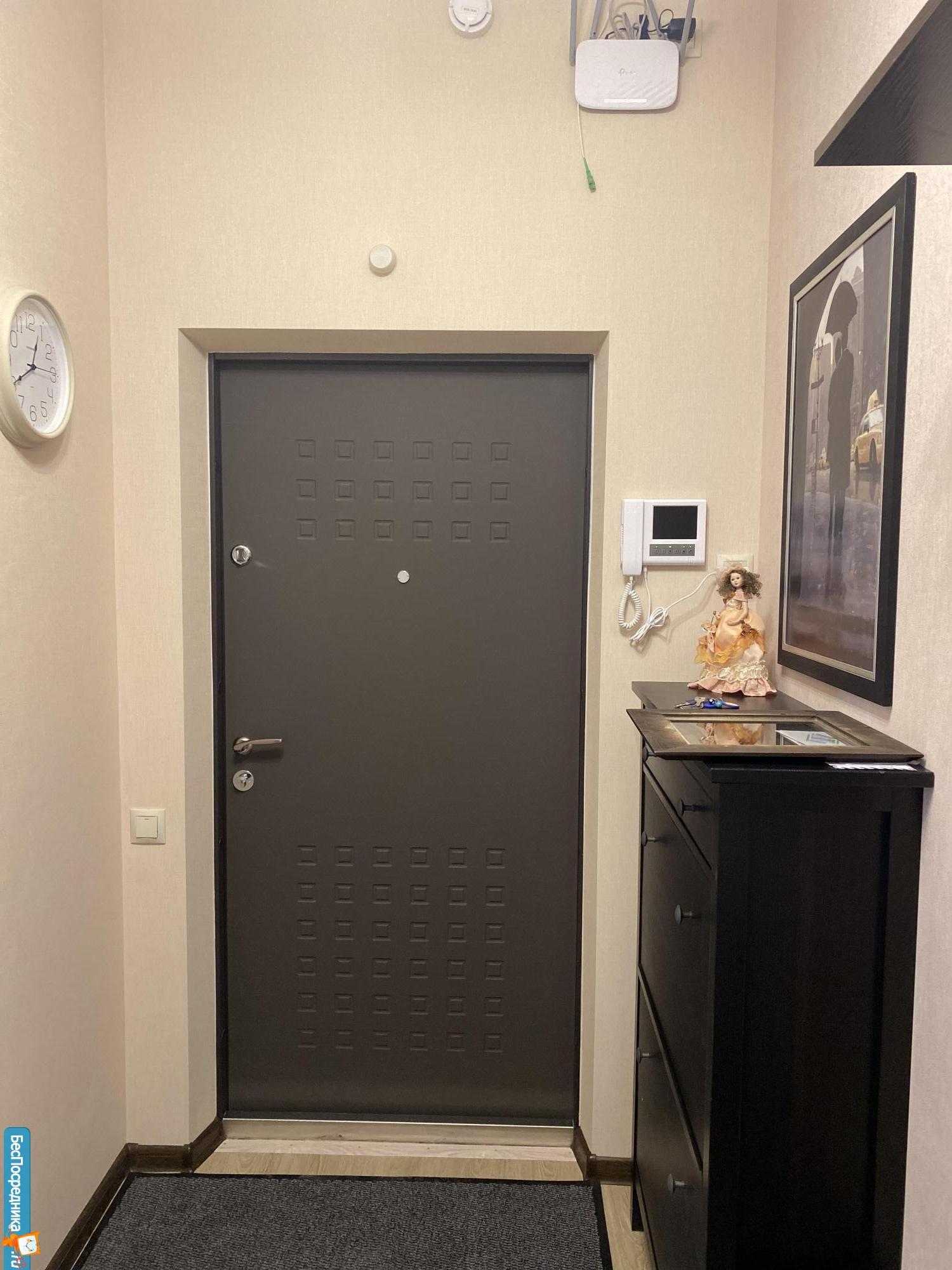 В прихожей установлен встроенный вместительный шкаф-купе с зеркальными дверями и домофоном с видеонаблюдением.