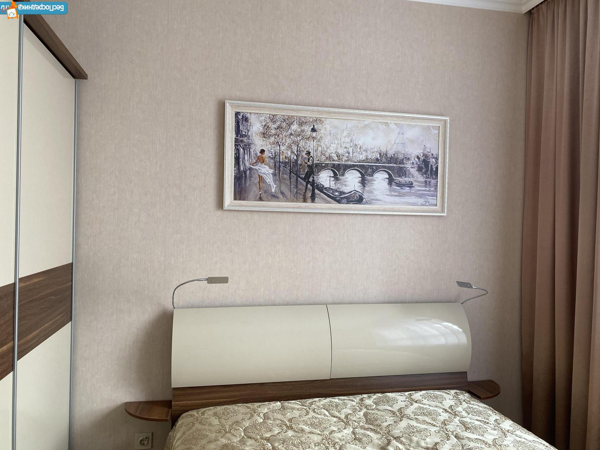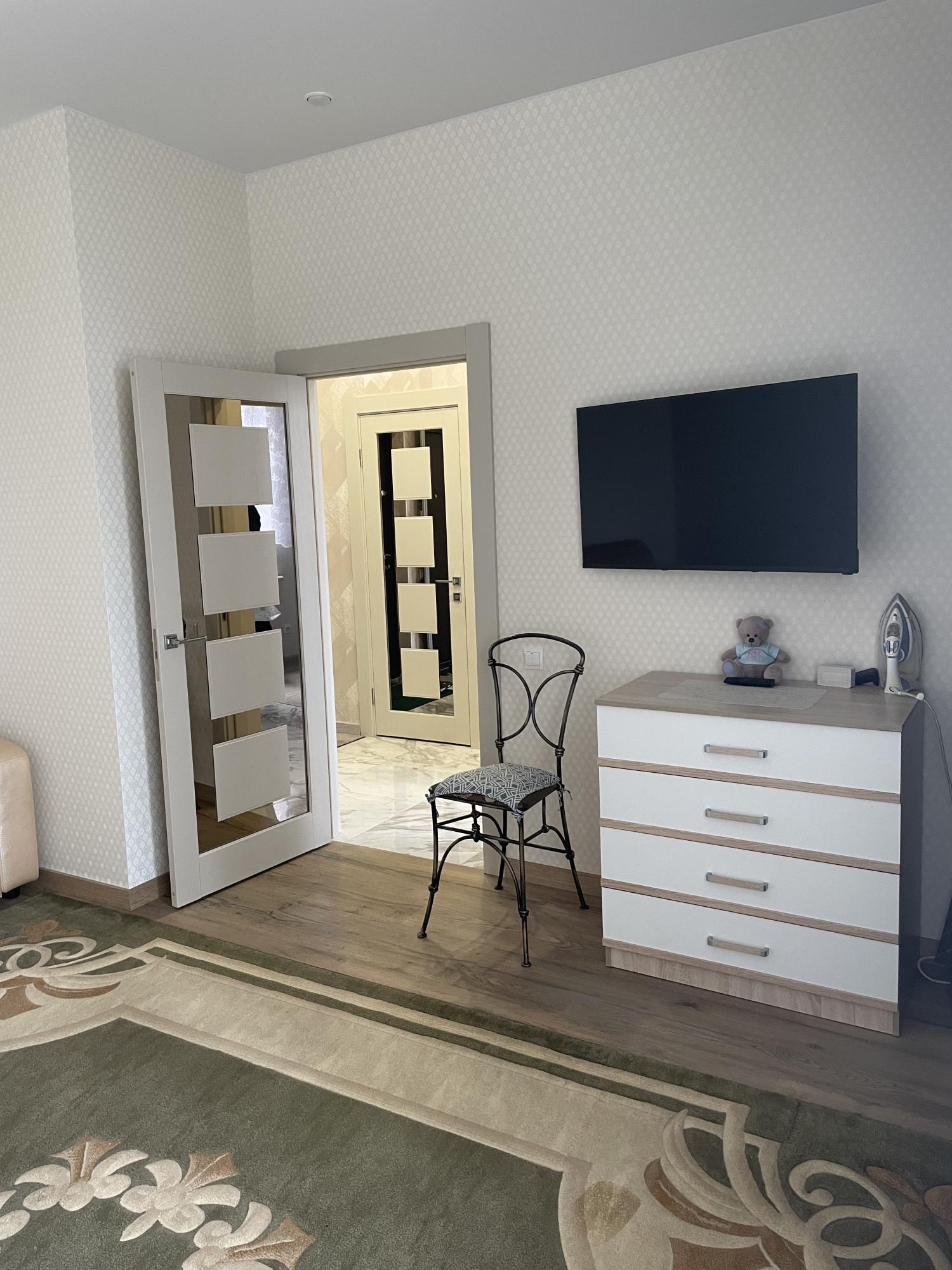 ванная комната со стиральной машиной, тумбой с раковиной и большим зеркалом и бойлером на время отключения горячей воды; Гостинная комната с большой кроватью 1600/2000, креслом со спальным местом, плазмой с гостиной, туалетным столиком и шкафом. А так же в прихожей есть дополнительный шкаф для хранения одежды, пылесос, утюг, гладильная доска и кондиционер!
