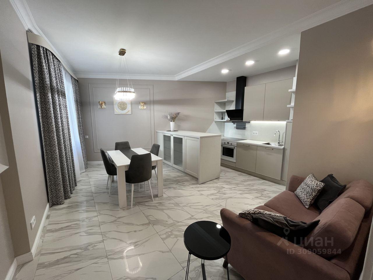 Сдается на длительный срок квартира 73 кв.м. (евротрешка) с кухней 22, 5 м и комнатами 19 м (в том числе гардеробная 6 м) и 11 м . В квартире имеется все необходимое.