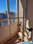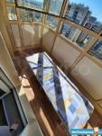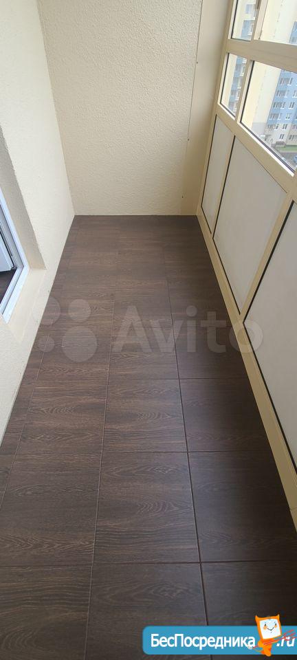 Оборудование: Кухня, холодильник, стол, стулья, диван, стиральная машина. Большой балкон (4,5 м). На балконе выложена плитка.