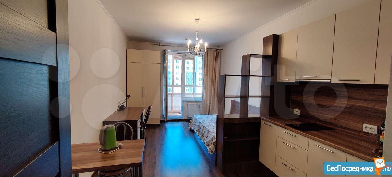 в ЖК "Чистое небо" сдается меблированная студия на 20 (из 24) этаже в долгосрочную аренду от 3-ех месяцев. Квартира принимает первых жильцов, вся мебель новая.