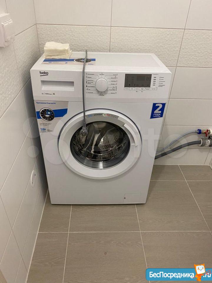 В квартире есть необходимая мебель и техника для комфортного проживания: двуспальная кровать, шкаф, кухонный гарнитур, холодильник, стиральная машина, чайник. В санузле тёплый пол.