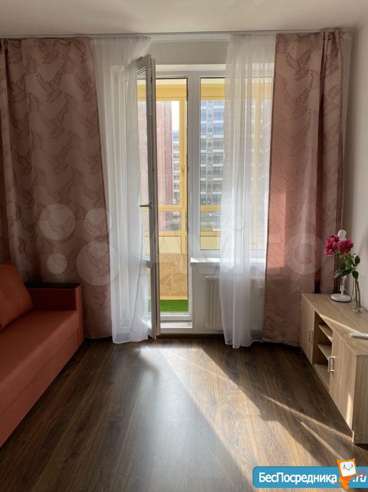 Сдам квартиру-студию в ЖК «Чистое небо» на длительный срок (от года). По адресу Арцеуловская Аллея 21. 14 этаж, большая комната 18 кв.м., просторная лоджия 4,6 кв.м., стеклопакеты с микропроветриванием.