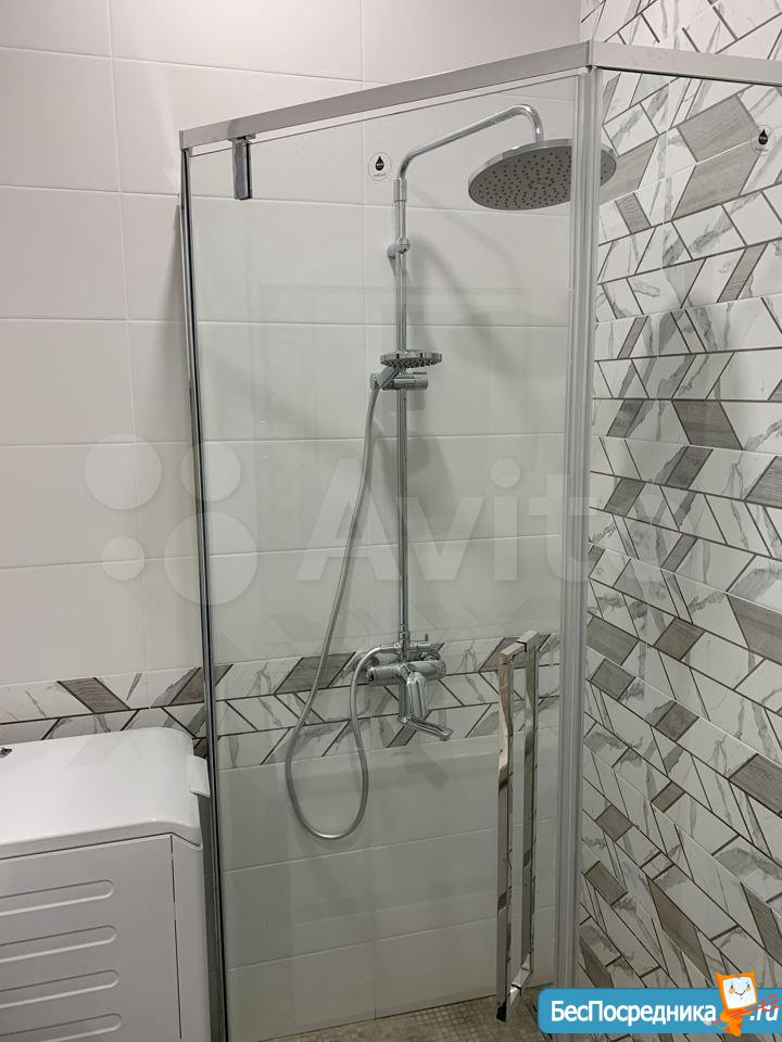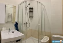 Санузел совмещенный. Душевой уголок, стиральная машина, вместительный шкаф.