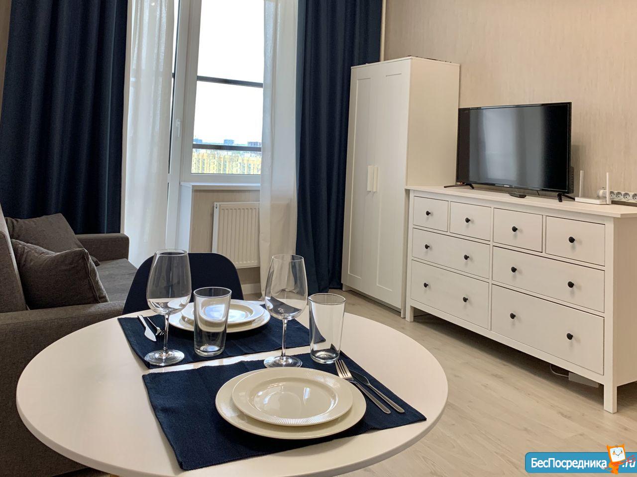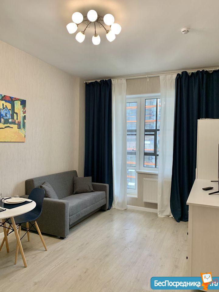 Сдается новая и полностью оборудованная студия в апарт-отеле Salut на Пулковском шоссе, напротив красивого парка . На территории апарт-отеля находятся несколько продовольственных магазинов, салоны красоты, бар, кондитерские, недалеко - разные ТЦ и гипермаркеты, спортивный центр с бассейном, внизу подземный паркинг. 15 минут пешком до м. Звездная , 10 минут на машине до м. Московская.