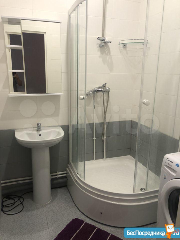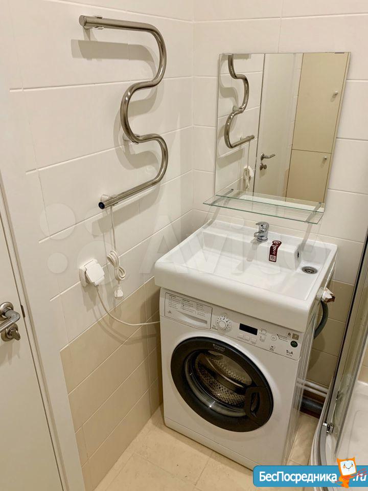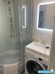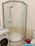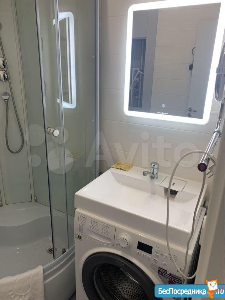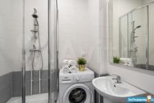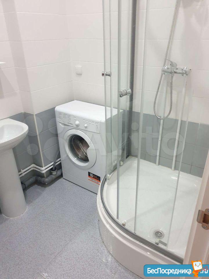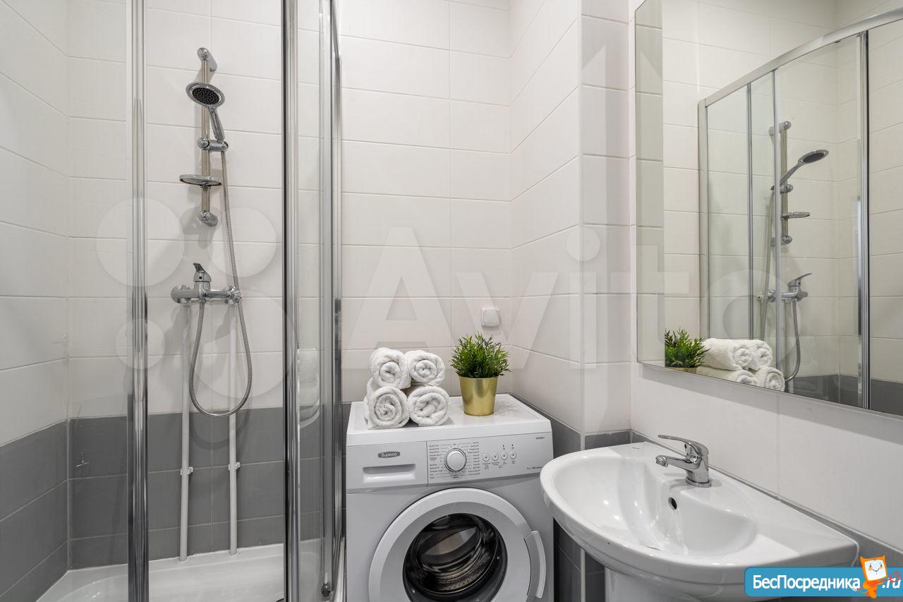 В ванной – душевая кабина и стиральная машина.