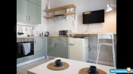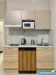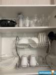 Квартира полностью оборудована техникой (микроволновка, духовка, вытяжка, индукционная плита, чайник, холодильник, посуда; пылесос).
