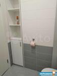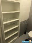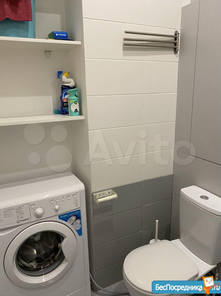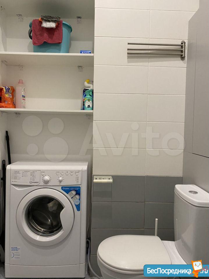 - ванная: стиральная машина Indesit, душевая кабина, полки для бытовой химии и полотенец, зеркальный шкафчик для косметики, фен;