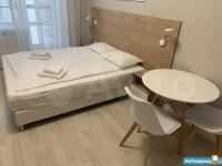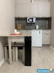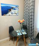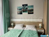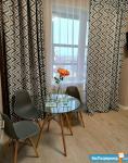Идеальный вариант для одного, двух человек. Укомплектована всем необходимым для комфортного проживания. В студии есть двухспальная кровать, прикроватные тумбочки, стеллаж, комод, телевизор, холодильник, оборудованная кухня, стол, стулья. Застекленная лоджия со столом и стульями.