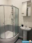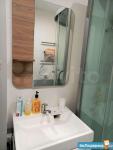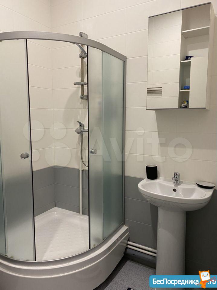 ⁃ В ванной удобная раковина, душевая кабина и встроенный шкафчик от пола до потолка.