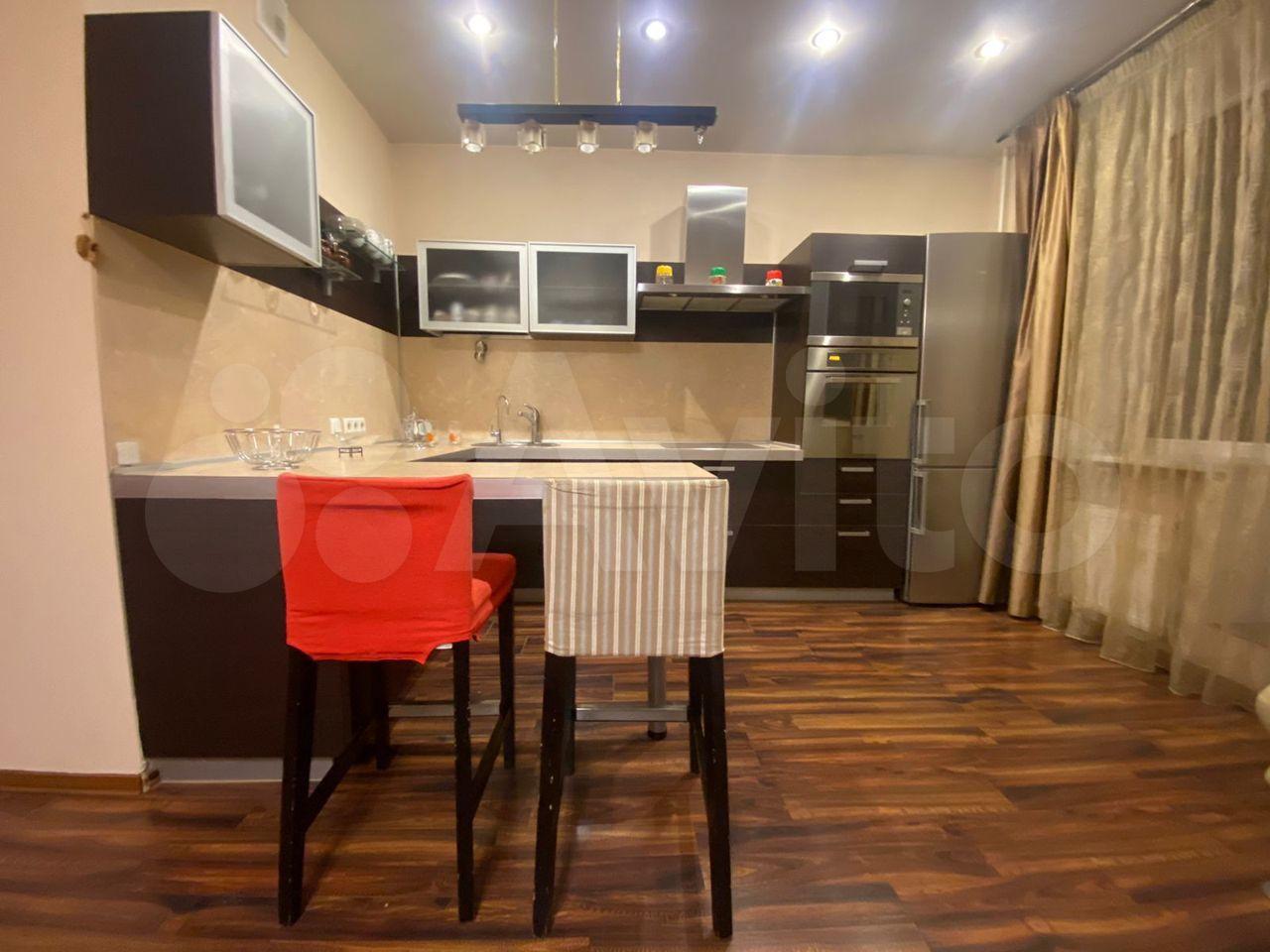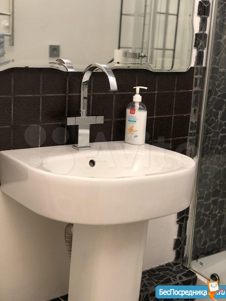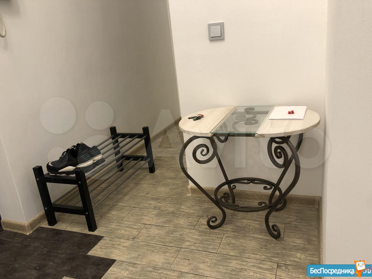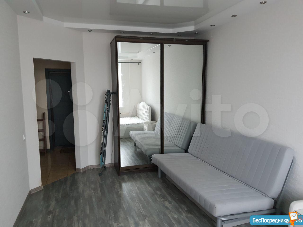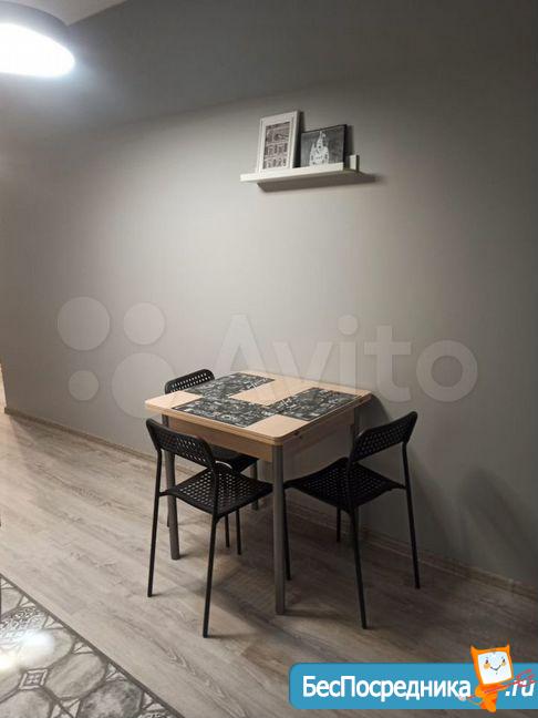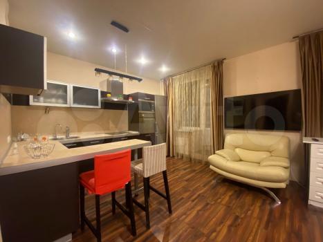 В квартире комната, кухня, коридор, раздельный санузел, остекленный балкон, гардеробная/кладовая. Проход от лифта на этаж огорожен. Светлая, окна во двор с видом на зелень и коттеджи. Отделка обновлена, стены - декоративная штукатурка, фасадный камень. Кухня со встроенной техникой: варочная панель, духовка, вытяжка, СВЧ-печь, посудомойка, стиральная машина, холодильник. Меблирована. Полезные мелочи: гладильная доска, утюг, напольные вешалки, вентилятор, сушилка для белья, wi-fi-роутер, кофейный и чайный наборы (чашки, блюдца, чайник).