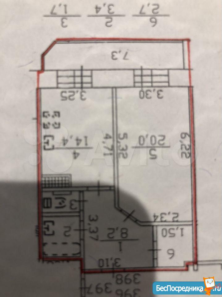 Однокомнатная квартира 45 кв.м. с лоджией.