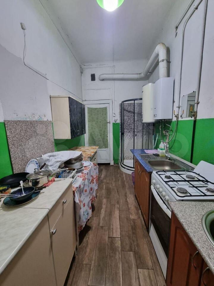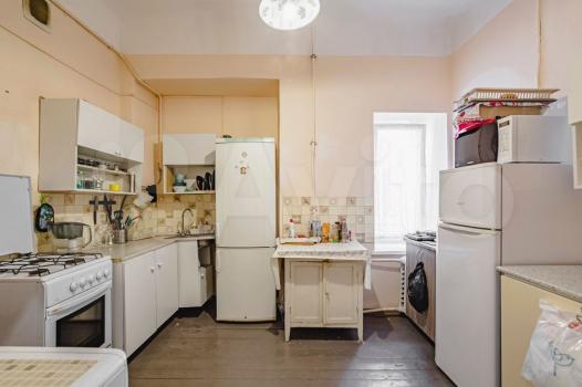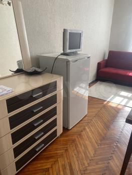 Квартира малонаселенная, во 2-й и 3-й комнате проживают пара и женщина с дочкой. Соседи тихие. Окна выходят в переулок и во двор (2 окна в каждой комнате). Высокие потолки. На кухне газовая плита и стиральная машинка, холодильник свой в каждой комнате. Есть душевая кабина и туалет с раковиной и гигиеническим душем.