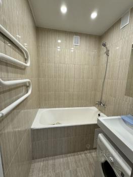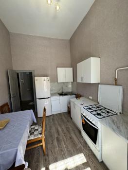 В квартире сделан евроремонт, который придаёт ей современный и стильный вид. В комнате и на кухне есть вся необходимая мебель. Кухня площадью 10 квадратных метров оснащена холодильником и другой бытовой техникой. В ванной комнате установлена ванна, а также стиральная машина. Окна выходят во двор, поэтому в квартире всегда тихо и спокойно. Есть доступ к интернету и телевизор для вашего комфорта.