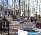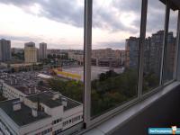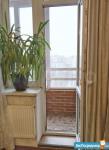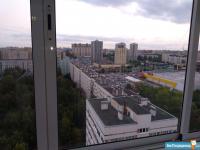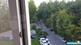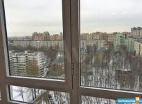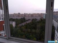 Лоджия застеклененная ,вид открывается на зелёный парк, с другой стороны детская спортивная площадка.