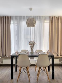 Есть все для комфортного проживания: бытовая техника, Смарт- ТВ, посуда, постельные принадлежности, WI-FI, письменный стол, посудомоечная машина