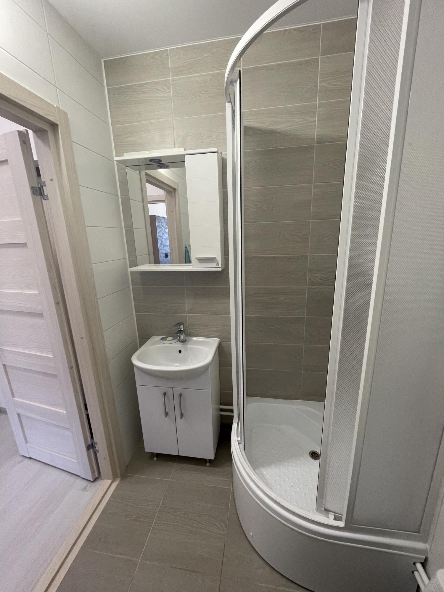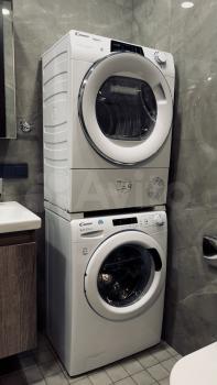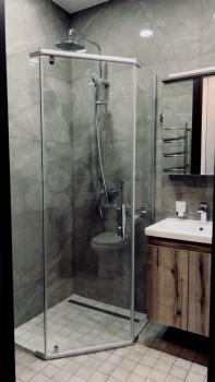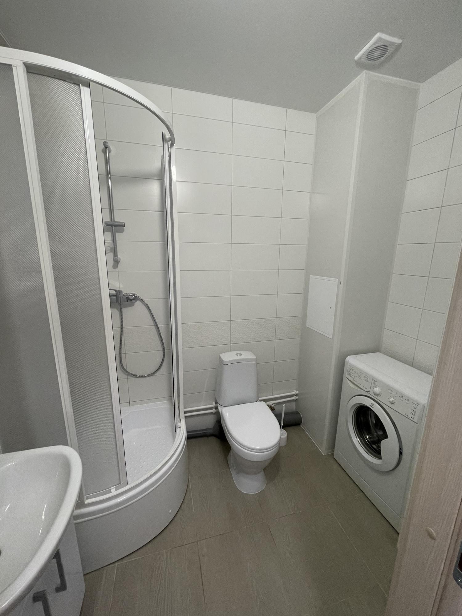 4. Санузел оборудован душевой кабиной, бойлером, стиральной и сушильной машинами и теплым полом.