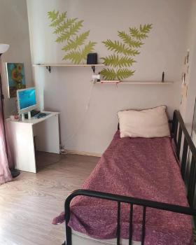 Комната-студия. Отдельный ( но индивидуальный) санузел. Вся квартира после ремонта. В квартире больше никто не живет. У метро Василеостровская. Закрытый двор.