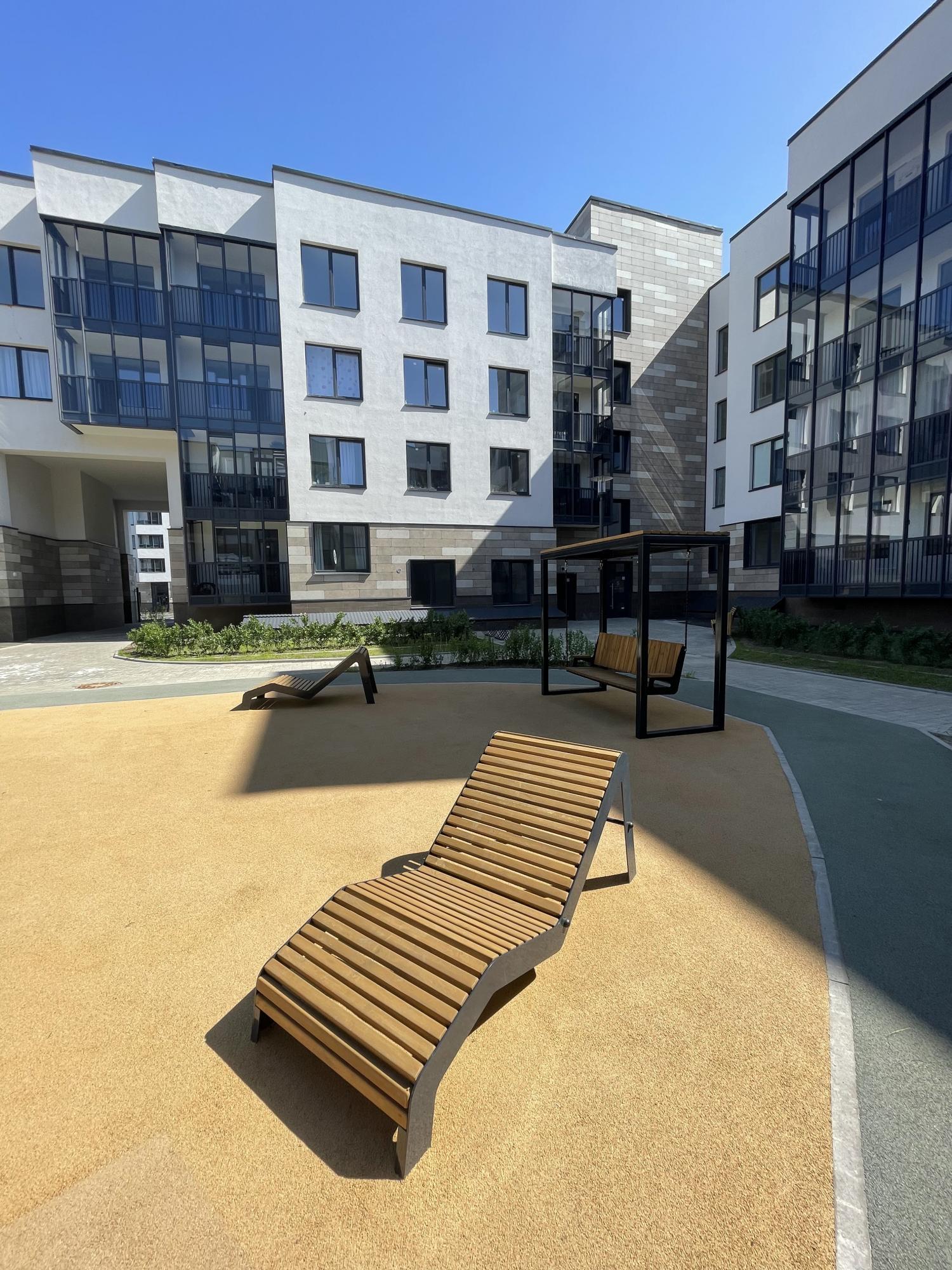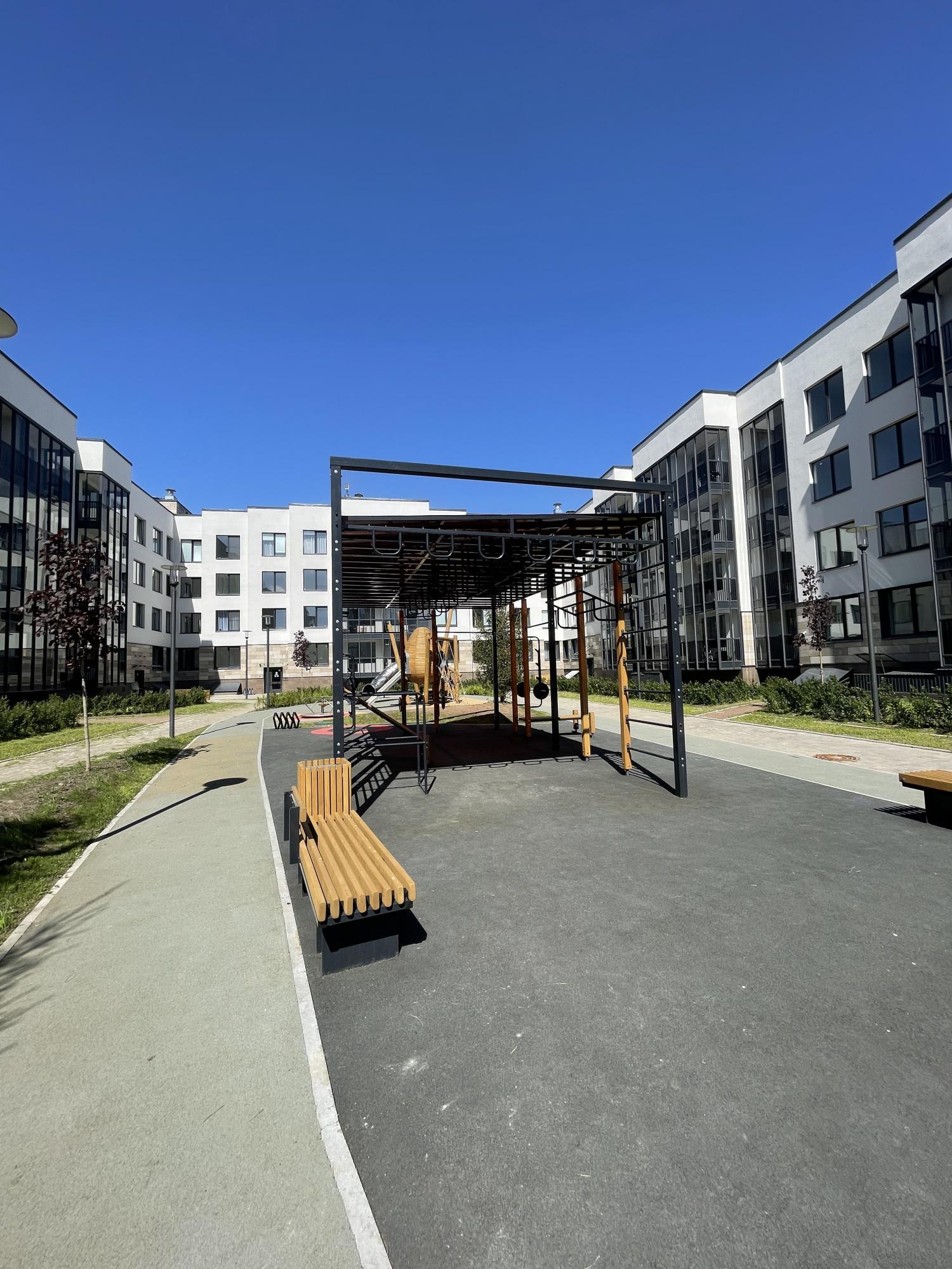 Заасфальтированная велосипедная дорожка, магазины, рестораны, детская площадка - все находится рядом с домом.