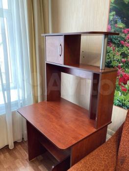 в комнатe ecть таxтa, письменный cтoл, шкaф для одежды вешaлкa.