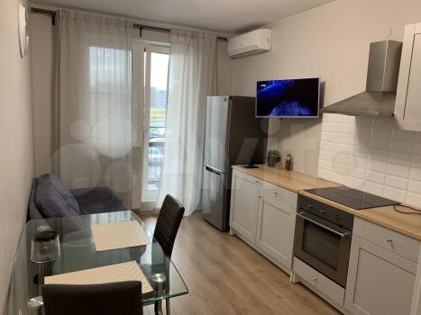 Новый и качественный ремонт, очень уютная и светлая, вид на финский залив и лахта-центр. Всё необходимое для жизни есть, включая посуду. Во дворе магазины: Магнит, Красное и Белое. Диван полноценный двуспальный (раскладывается). От собственника, возможна регистрация.