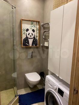 —Санузел совмещённый с ванной. Есть стиральная машина. Проложены теплые полы в ванной .