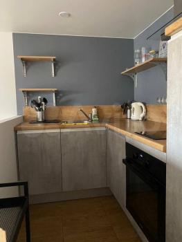- на кухне имеется все необходимое ( эл.чайник, холодильник, варочная поверхность, духовой шкаф,микроволновая печь, посуда);